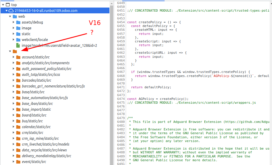 when debuggin js with chrome in v16 and v15 the js/css is located in a non named subfolder.