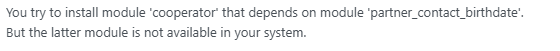 from odoo 18, i reinstalled odoo 16, to install cooperative vertical module, after app update listing, the odoo cooperative module, show, but when im about to activate cooperative module, another module is missing, may i kindly ask where can i get this module?partner_contact_birthdate