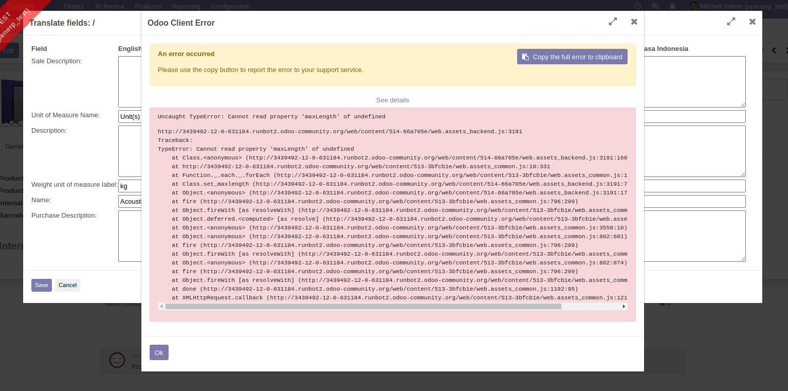 I think there is a minor bug. I tried it in odoo v12 and got some error about maxLength. However since I only use it for a form with only translatable fields of type Text, the error is gone, so I assume there is something wrong for fields of type Char, but I didn’t investigate further though. Am 22.09.20 um 10:27 schrieb Radovan Skolnik: > Interesting but whenever I try that on runbot I end up with exception...